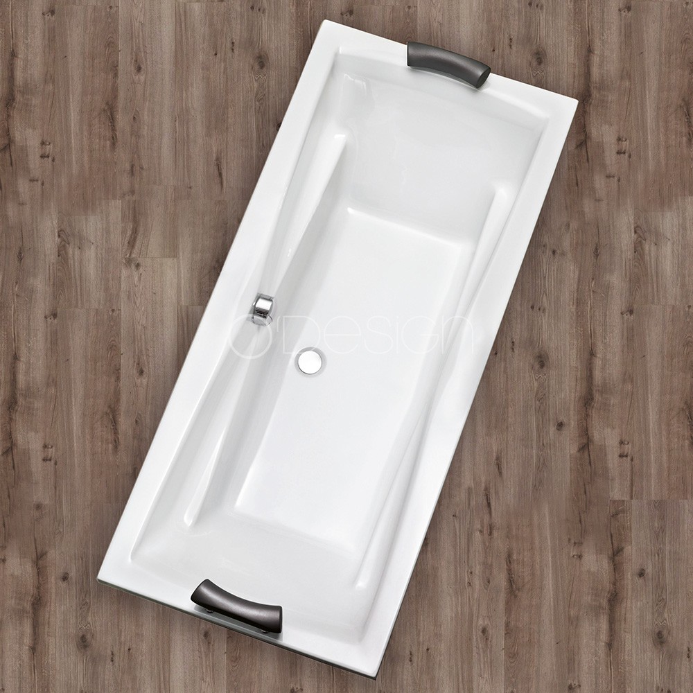 Modèle spacieux avec accoudoirs intégrés en symétrie – Fabriquée en acrylique sanitaire haut de gamme. Renforts intégrés rebords et fond.