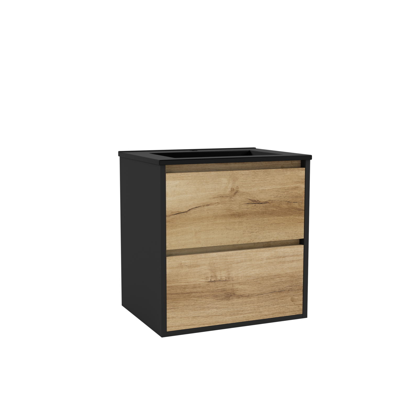 Finition extérieure mélaminé laqué blanc ou noir mat sur les côtés et chêne doré en façade,