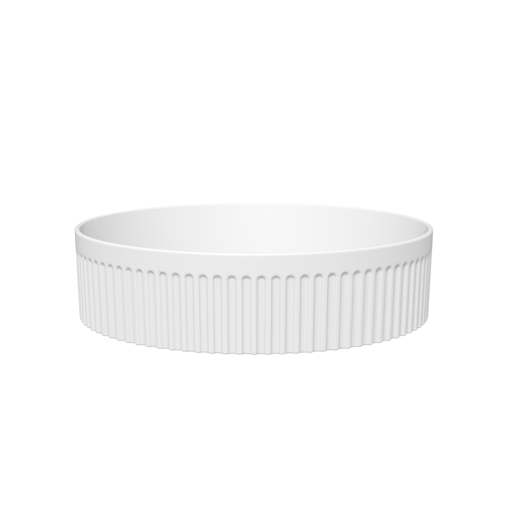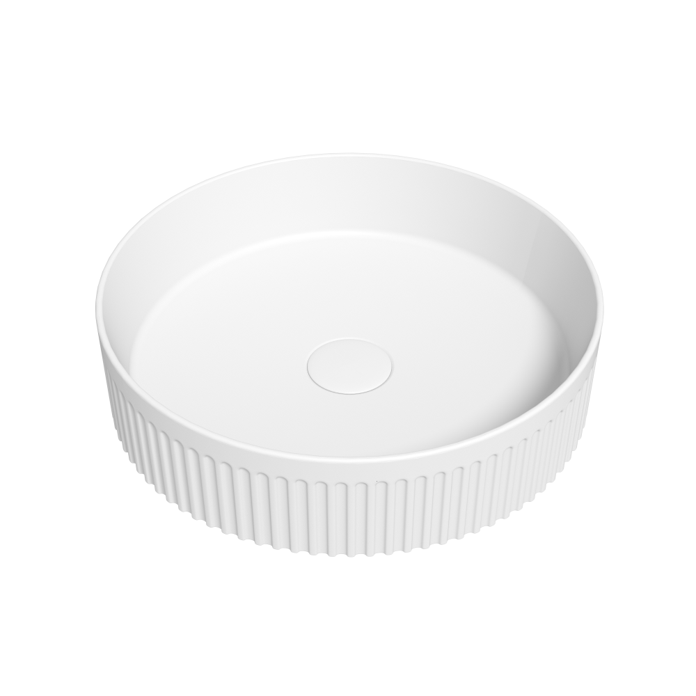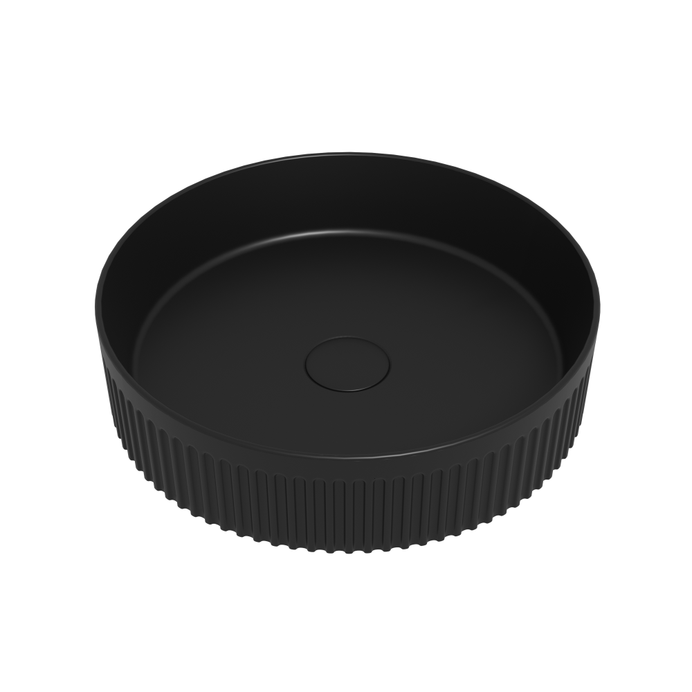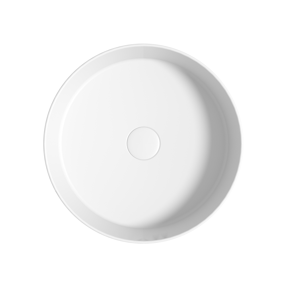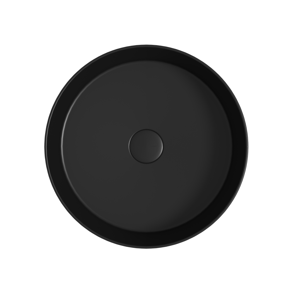 Vasque à poser en céramique, Forme ronde, Dimensions : Ø 400 x H98 mm, Sans trop-plein, Finition blanc mat ou noir mat