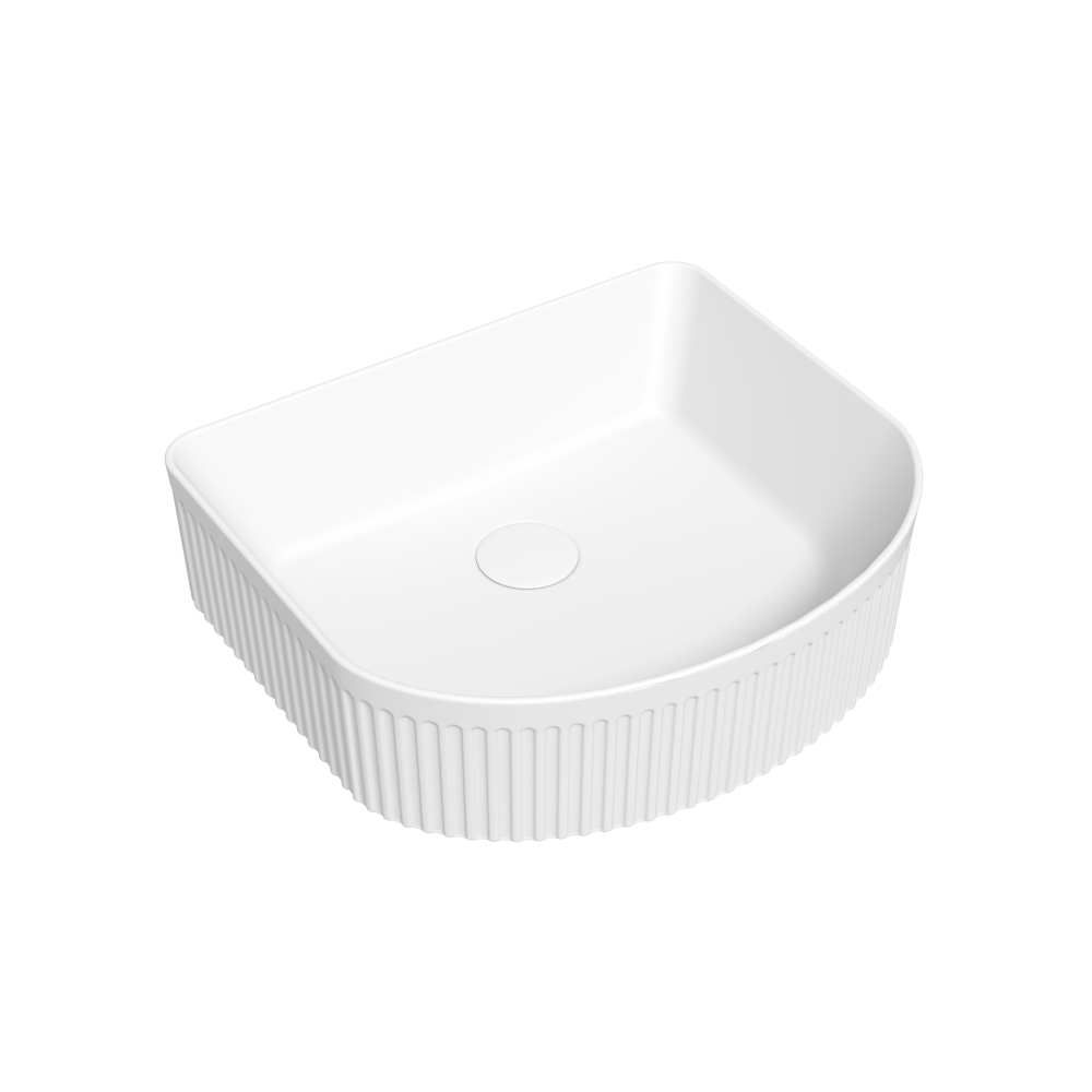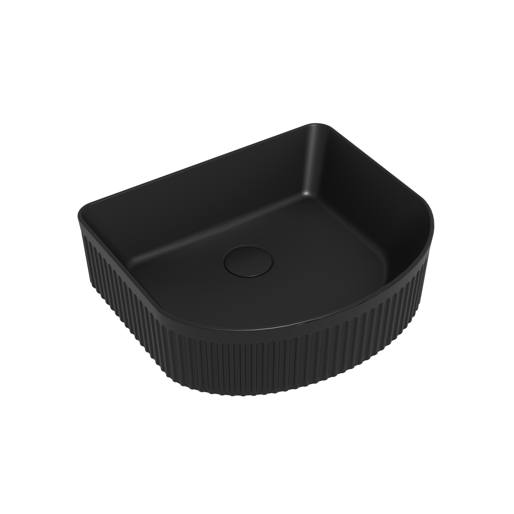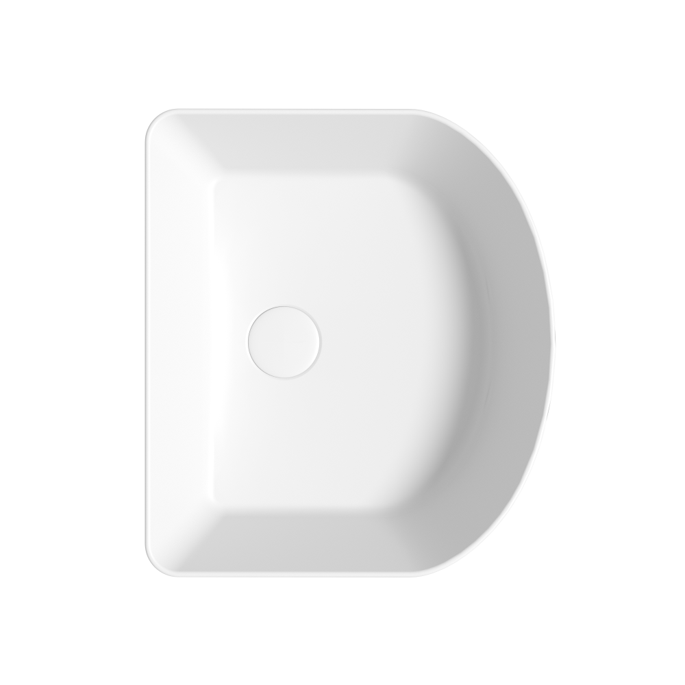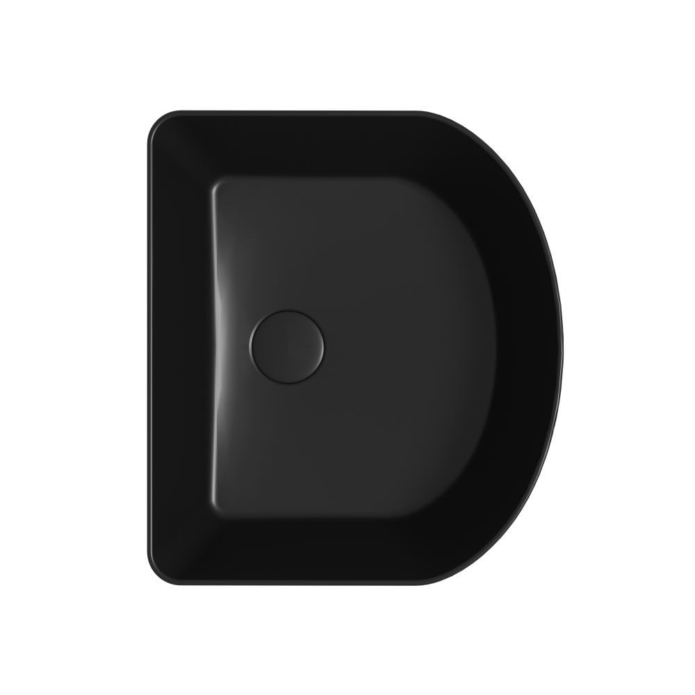 Vasque à poser en céramique, Forme arche, Dimensions : 415 x 360 x H120 mm, Sans trop-plein, Finition blanc mat ou noir mat